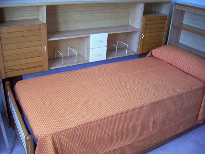 Schlafzimmer mit Einzelbetten, 1 Badezimmer mit Badewanne. 2 überdacht