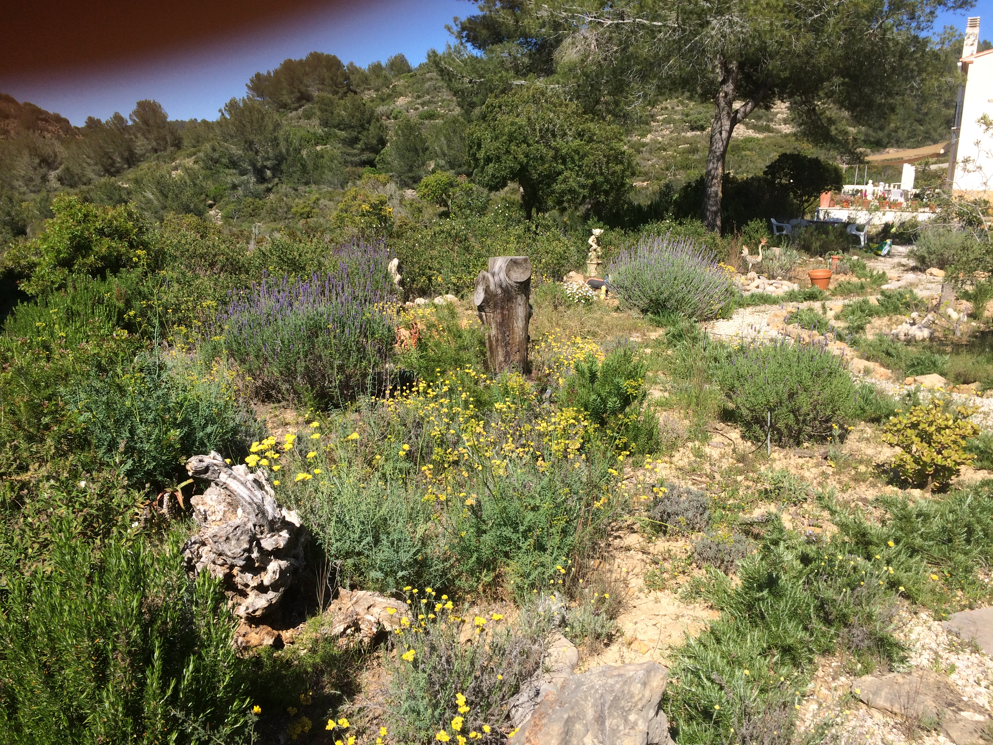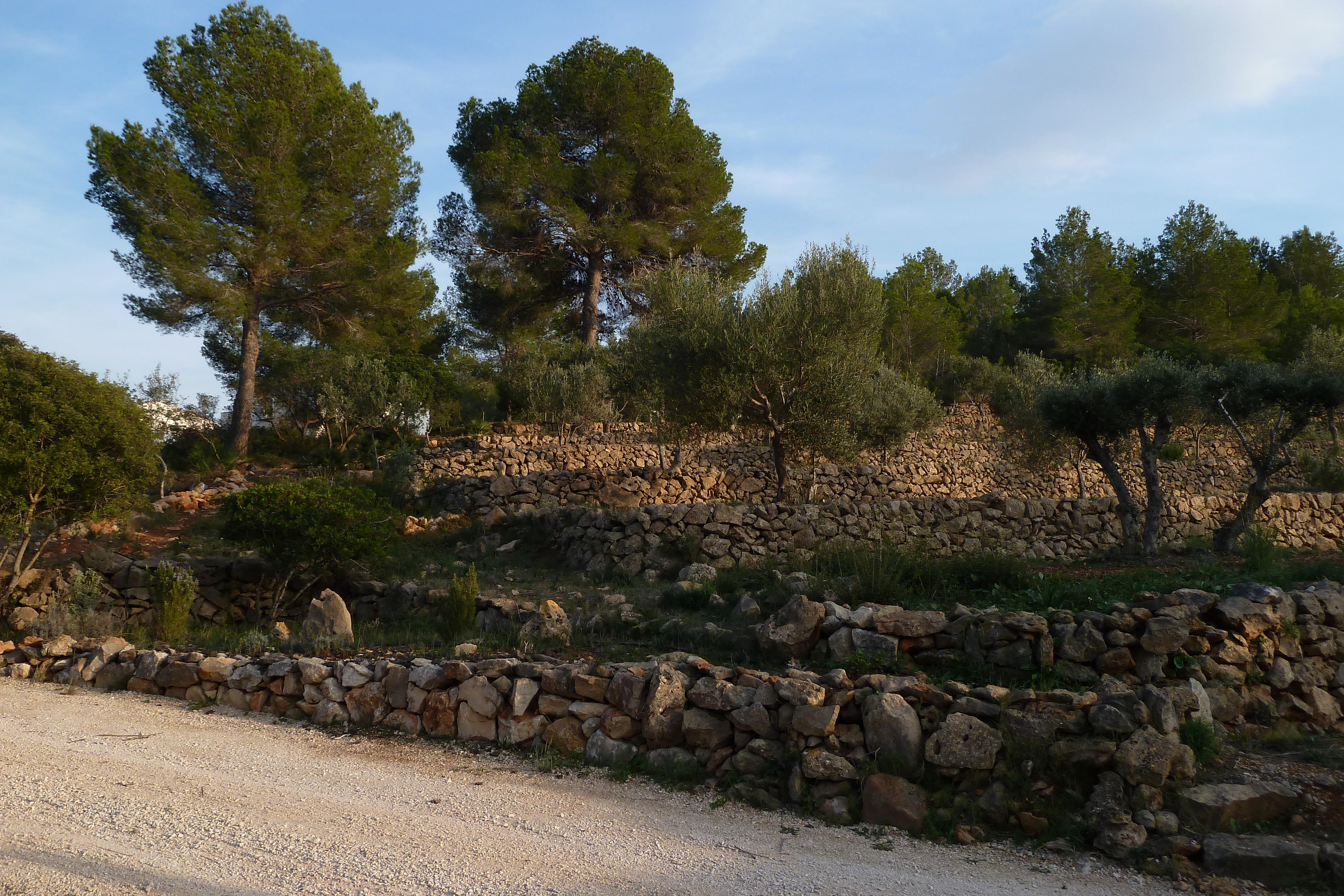 The one half is natural, the other half is structured by natural stone terraces with olives, almonds, flowers,